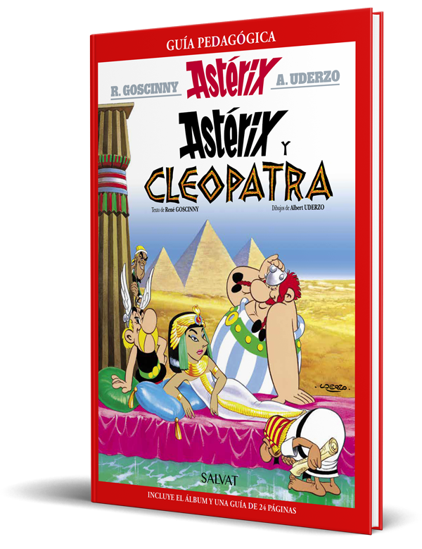 Edición especial de Astérix y Cleopatra, enriquecida con una guía pedagógica que facilita a los docentes que sus alumnosy sus alumnas trabajen aspectos relacionados con la Lengua, la Literatura y la Historia.